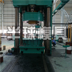 在油壓機(jī)模具中,當(dāng)裝在活動(dòng)橫梁的上模與沖壓毛坯接觸時(shí),便立即進(jìn)行加壓,直到工作缸上腔的壓力達(dá)到規(guī)定的數(shù)值,高壓油被封閉,與此同時(shí),高壓油泵卸荷,油壓機(jī)處于保壓狀態(tài)。達(dá)到規(guī)定的保壓時(shí)間后,工作缸上腔的高壓油流回充油箱內(nèi),同時(shí)高壓油泵打出的油進(jìn)人工作缸的下腔,驅(qū)動(dòng)橫梁迅速回到起始位置。